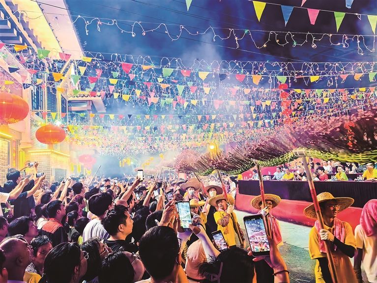 10月7日晚,禪城區(qū)上元舞火龍現(xiàn)場熱鬧非凡。/佛山市新聞傳媒中心記者林曉平攝